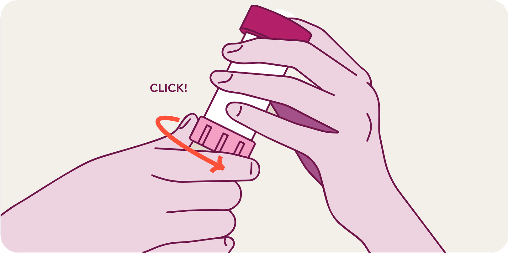 Turn the base of the container to dispense the product the desired number of times, as prescribed. You will hear a “click” with each turn.