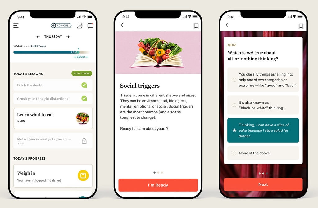 At Noom, we know that weight loss needs to involve more than just diet plans. It’s why we take a holistic approach that harnesses the principles of psychology (such as Cognitive Behavioural Therapy) to help you build healthy habits for the long term.