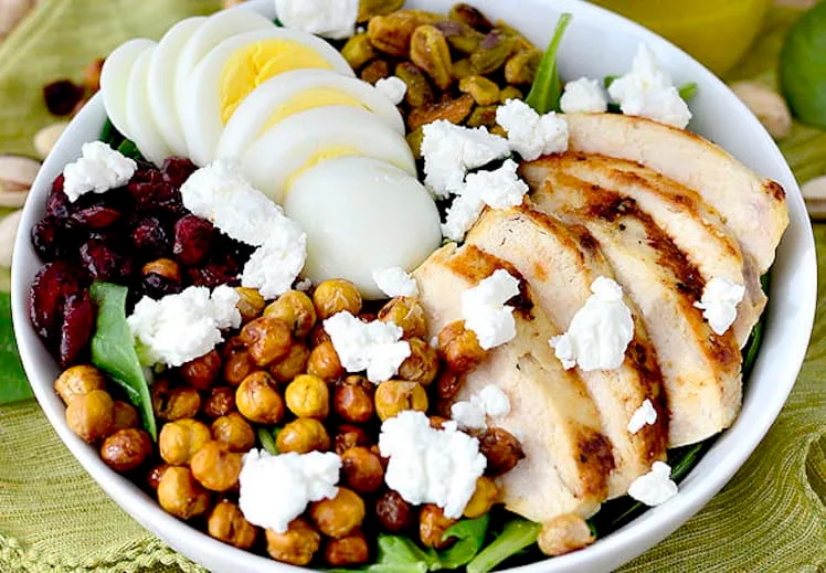 Chicken Power Bowl with Crispy Garbanzo Beans (via Iowa Girl Eats)