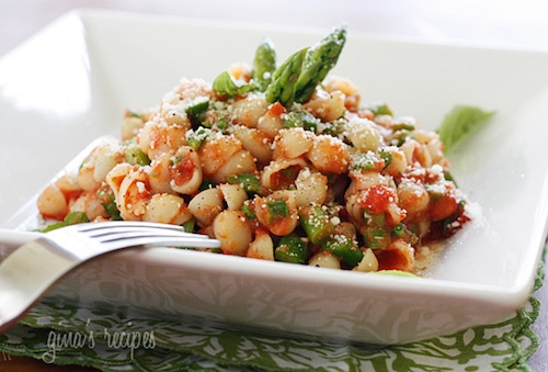 Baby Pasta Shells with Asparagus and Marinara Sauce via Skinny Taste