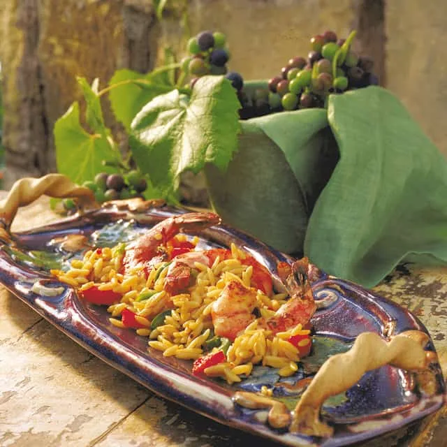 This Asian-inspired recipe features a marinade made with soy sauce, vinegar, and honey, making the shrimp full of flavor. The garlic and jalapeno also give the orzo a nice zing.