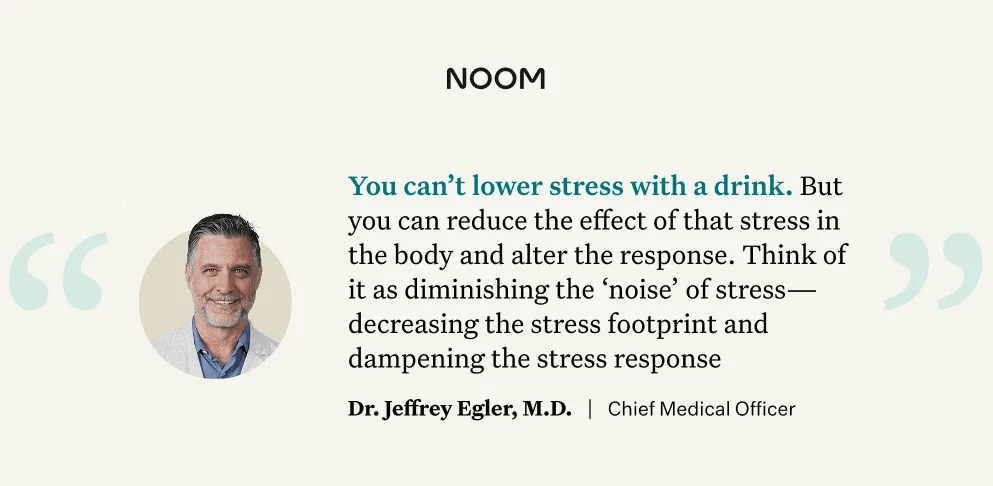 “You can’t lower stress with a drink,” says Dr. Jeffery Egler, MD, Chief Medical Officer at Noom. “But you can reduce the effect of that stress in the body and alter the response. Maybe think of it as diminishing the ‘noise’ of stress—decreasing the stress footprint and dampening the stress response.”