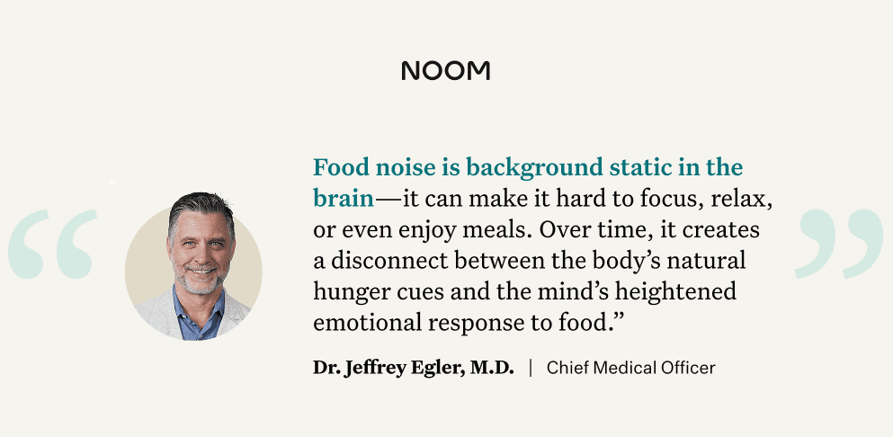 “Food noise is background static in the brain—it can make it hard to focus, relax, or even enjoy meals,” says Dr. Jeffrey Egler, MD, Chief Medical Officer at Noom. “Over time, it creates a disconnect between the body’s natural hunger cues and the mind’s heightened emotional response to food.”