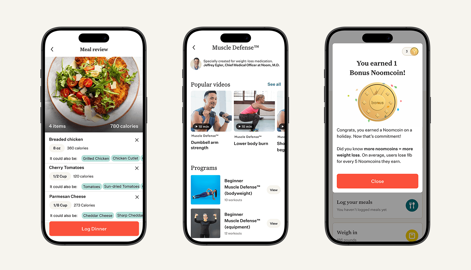 Noom’s digital app experience is designed to build and sustain healthier behaviors in the areas of nutrition and physical activity – supporting improved muscle mass and enduring long-term health benefits.