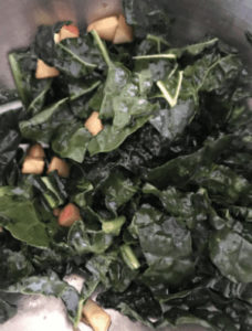 1) Kohlblätter klein schneiden in eine Schüssel geben
