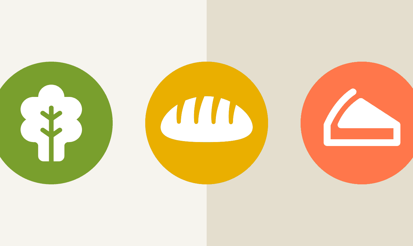 Los alimentos de la categoría verde representan alrededor del 30% de una dieta balanceada, pero cuando se trata de verde, ¡cuantos más, mejor! Son las comidas menos calóricas y densas, por lo que puedes comer más y mantener tu cuenta regresiva de calorías también. Algunos alimentos verdes comunes son vegetales, frutas y granos integrales. Compartimos algunos ejemplos: