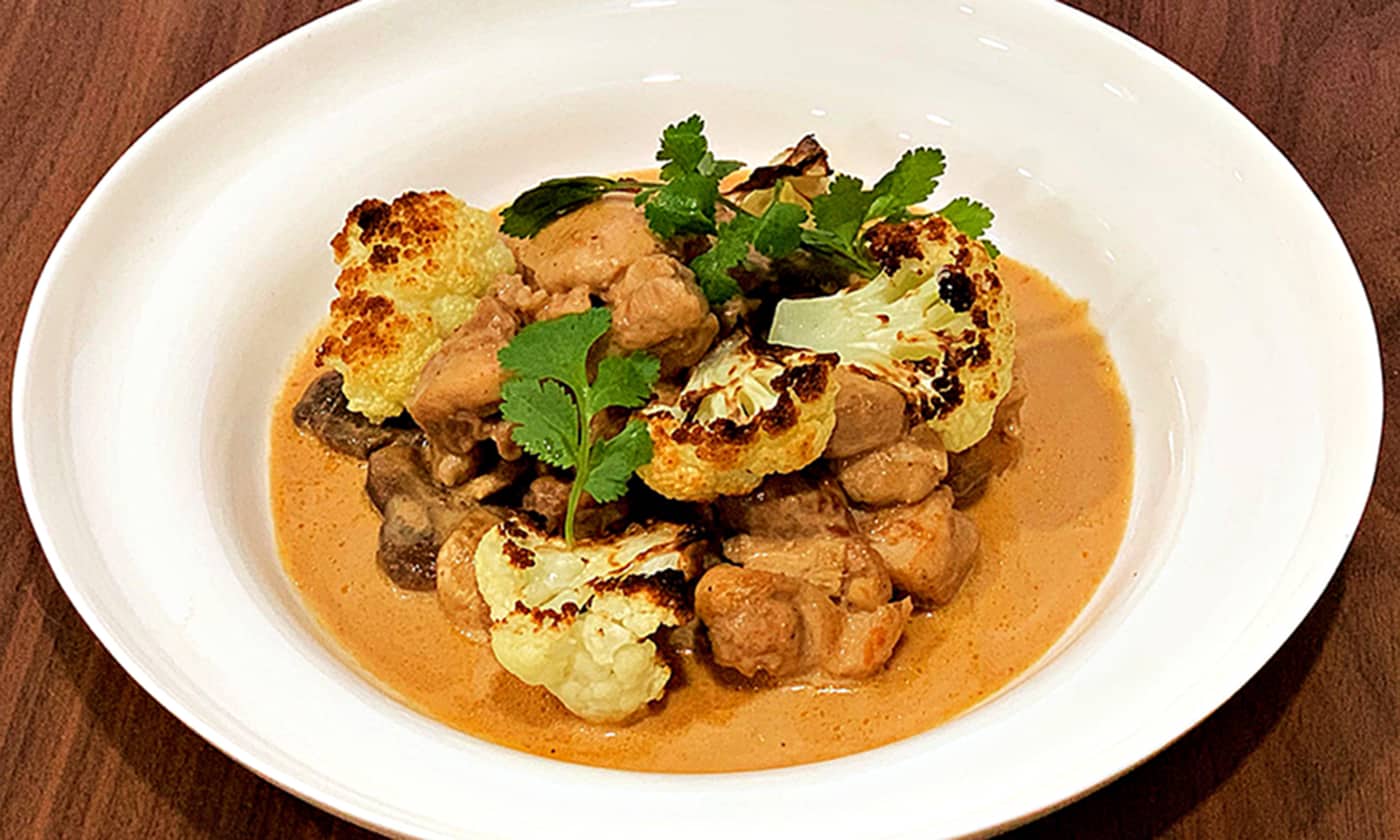 - Sirve el pollo con el coliflor y agrega la salsa con los champiñones encima. Puedes agregar una hierba fresca como: Albahaca picada, cilantro, cebolla de verdeo o perejil.