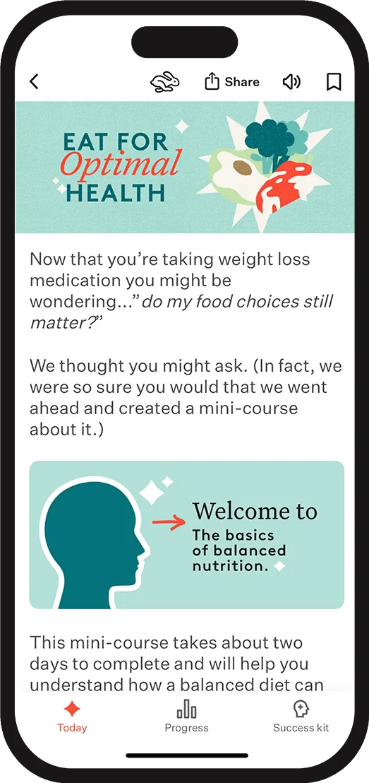 Behavior change content that helps members manage side effects, overcome challenges, and build healthy habits.