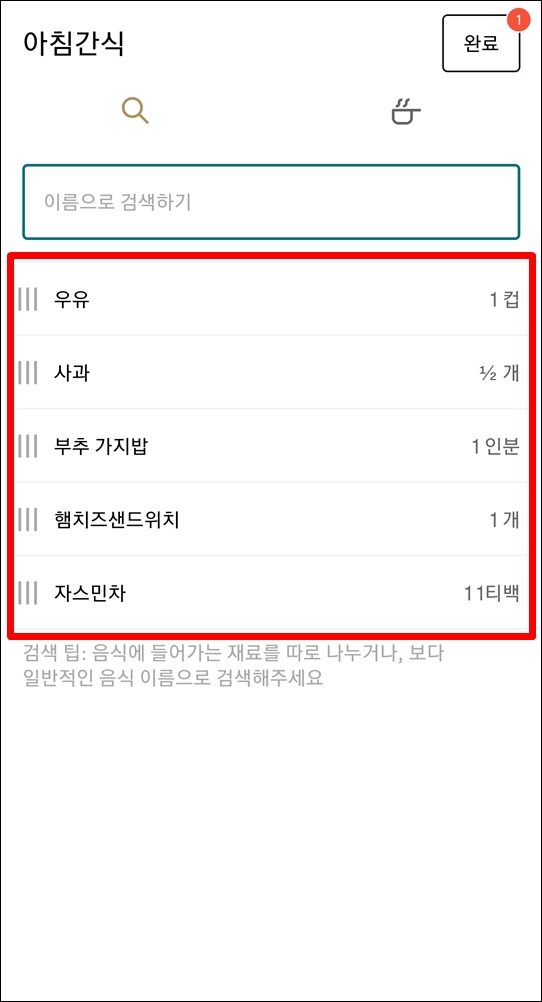 tip 1) 같은 음식, 같은 양을 기록하고 싶을 때