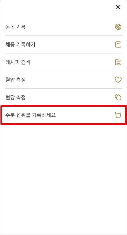 2. 수분 섭취를 기록하세요 클릭