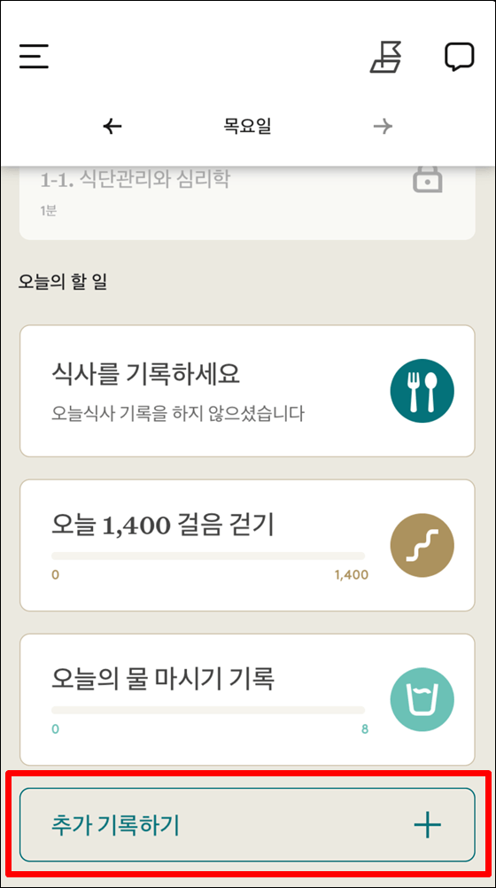 1. 홈 하단의 추가 기록하기 카드를 클릭하세요.