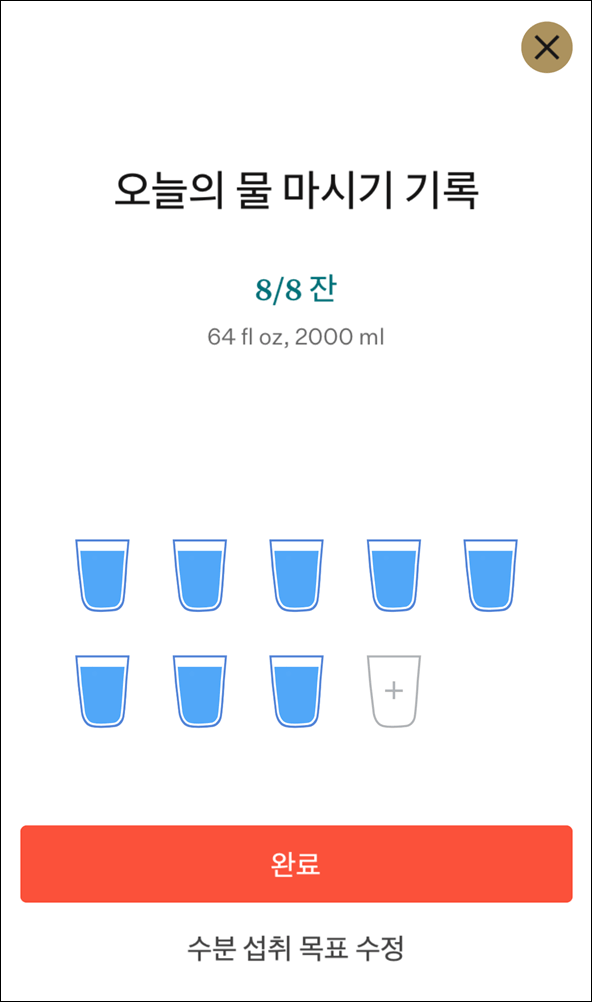 아래처럼 수분 섭취량을 기록할 수 있습니다.