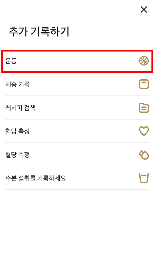 3. 운동 종목 목록에서 선택