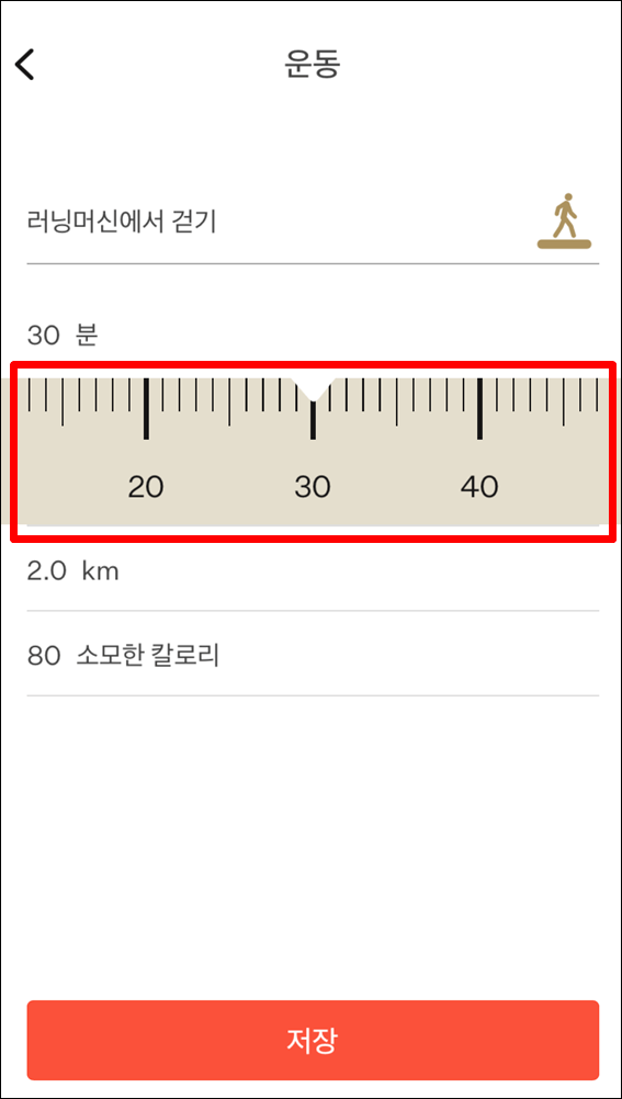 5. 줄자를 이용 하여 시간, 거리, 칼로리 설정.