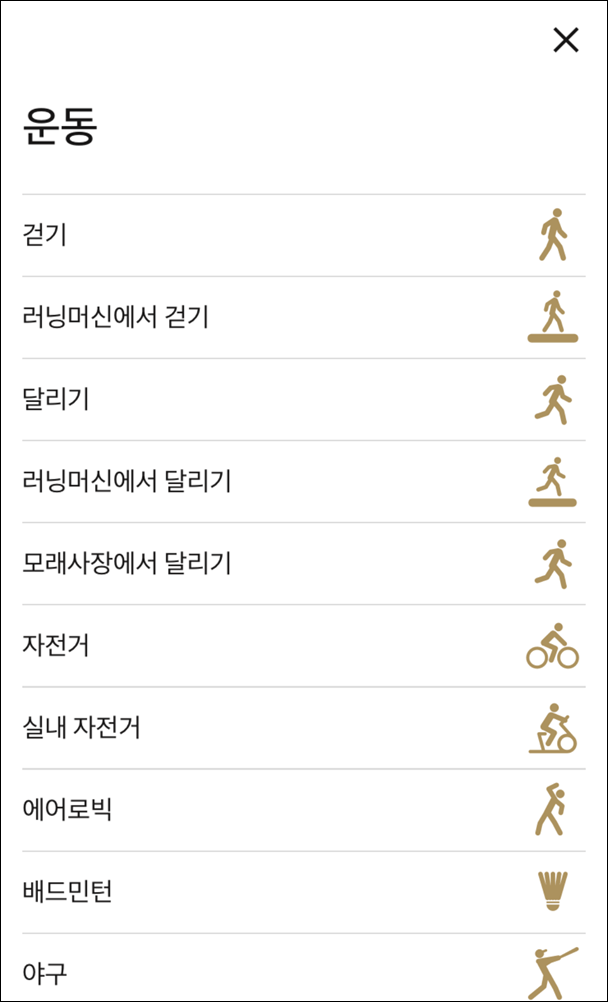 – 걷기, 자전거, 배드민턴, 야구, 골프 등 각종 운동뿐만 아니라 집청소, 쇼핑 등 일상적인 활동들까지 기록이 가능합니다.