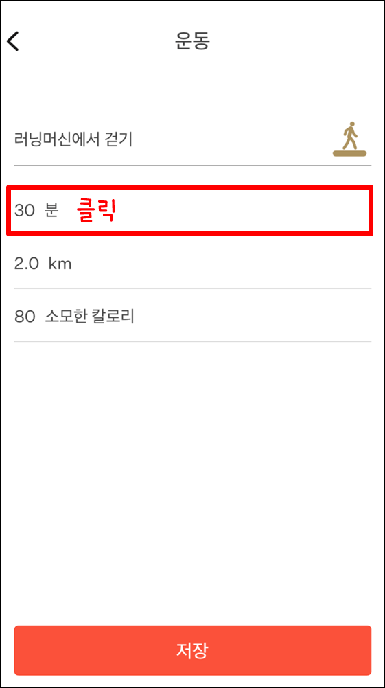 4. 시간, 거리, 칼로리 클릭