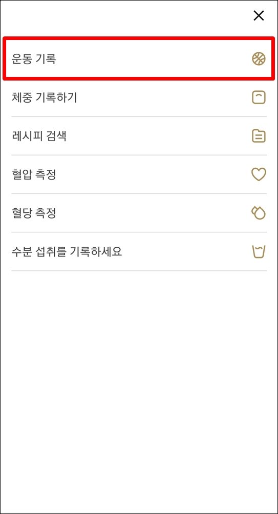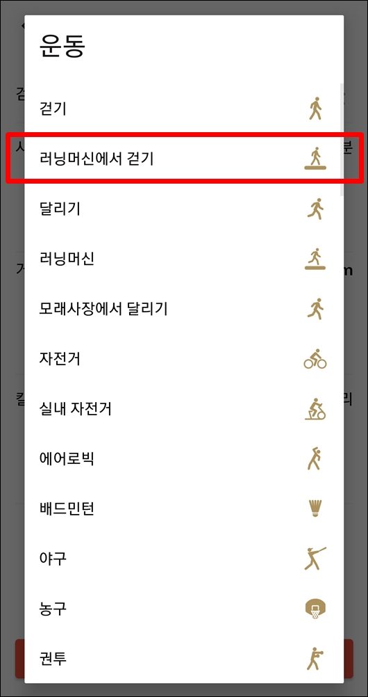 2. 운동 기록 선택