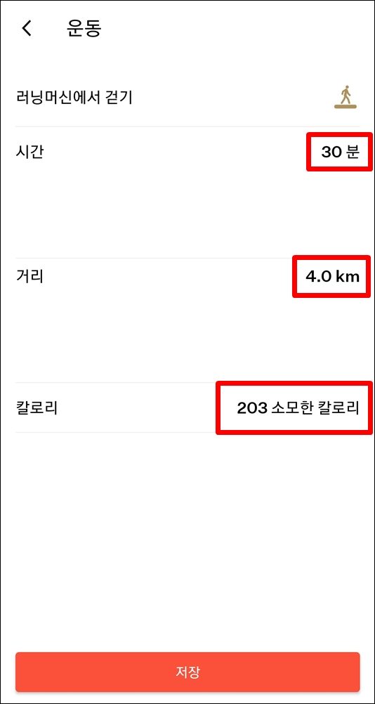 저장 버튼을 클릭하면 운동 기록이 완료됩니다.