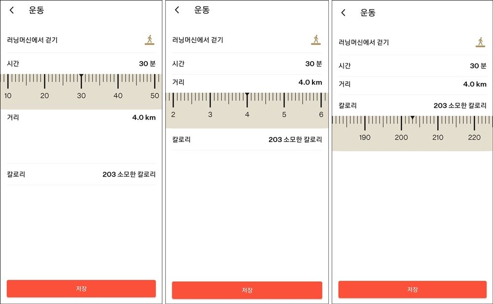 5. 줄자를 이용 하여 시간, 거리, 칼로리 설정.