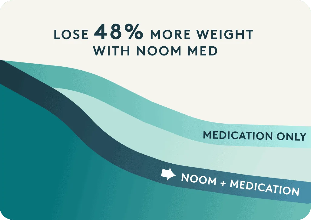 - Lose 48% more weight with Noom Med than medication alone†