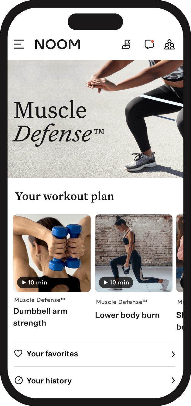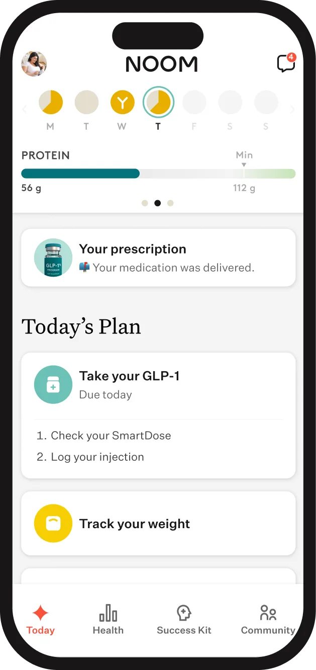 Noom’s GLP-1 Companion offers smart medication guidance, side-effect support, habit coaching, personalized nutrition guidance, muscle-focused movement, body composition insights, and everyday tools to support consistency and long-term success on GLP-1 medication.